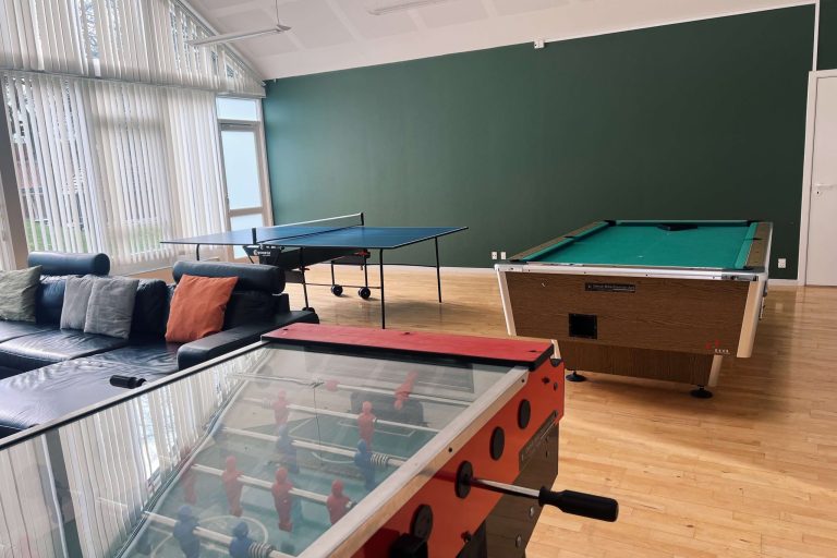 I vores moderne aktivitetsrum er der plads til både sjov og afslapning. Her kan I dyste i bordtennis, billard eller bordfodbold. I sofaområdet kan I slappe af med en god film eller et spil. Har du lyst til at holde dig aktiv? Så tilbyder vi også et veludstyret fitnessrum. Her finder du løbebånd, romaskine og motionscykler, som er ideelle til både individuelle gæster og sportsgrupper. Læs mere om vores faciliteter her.